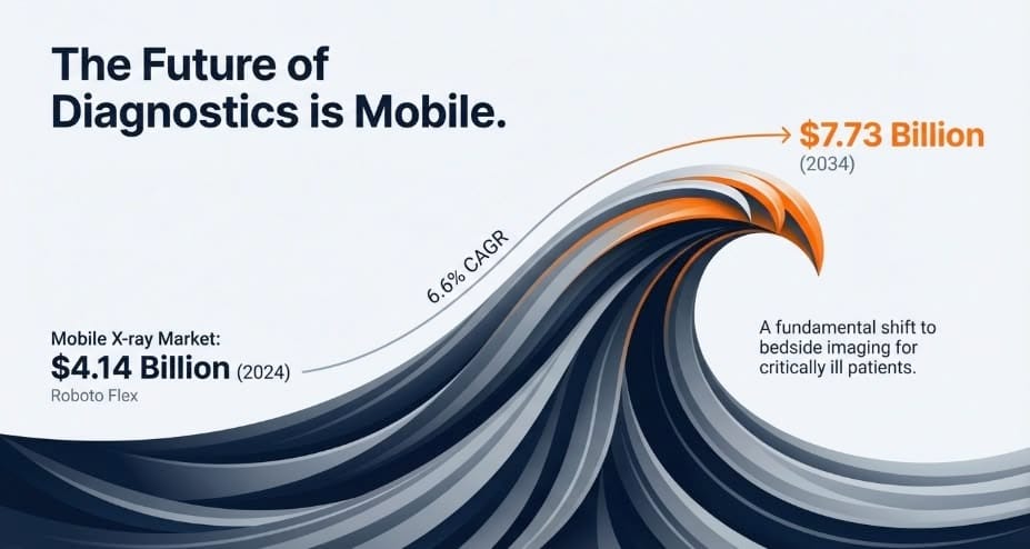 The digital mobile X-ray market is experiencing significant growth as healthcare facilities prioritize bedside diagnostics and point-of-care imaging. The global market reached $4.14 billion in 2024 and is projected to grow to $7.73 billion by 2034, representing a 6.6% compound annual growth rate. This expansion reflects healthcare's shift toward bringing diagnostic capabilities directly to patients rather than transporting critically ill individuals to imaging suites.