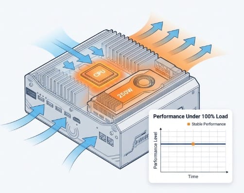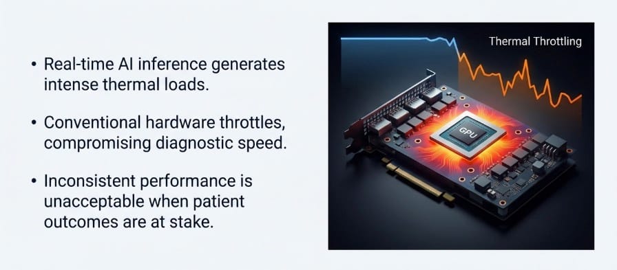 Real-time AI image analysis demands substantial GPU processing power to execute deep learning inference algorithms instantly. These computational workloads generate significant heat within compact mobile enclosures. Standard computing hardware throttles performance under sustained thermal loads, creating inconsistent processing speeds precisely when diagnostic accuracy matters most. Hospital corridors present variable ambient temperatures, and systems must maintain full performance whether operating in climate-controlled radiology suites or busy emergency departments with fluctuating conditions.